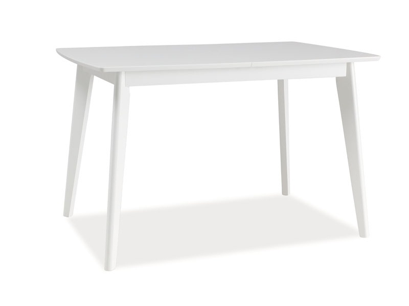 Stół rozkładany, blat: MDF, stelaż: drewno, kolor: biały.